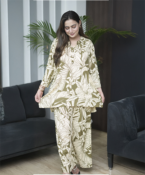 Make a bold style statement with this green & beige tropical floral print coord set, designed for both comfort and elegance. Crafted in soft, breathable fabric, this set blends an easy Indo-Western vibe with a chic modern print. Available in both classic black-beige and refreshing green color options, it’s a versatile outfit for casual outings, parties, or vacation wear.